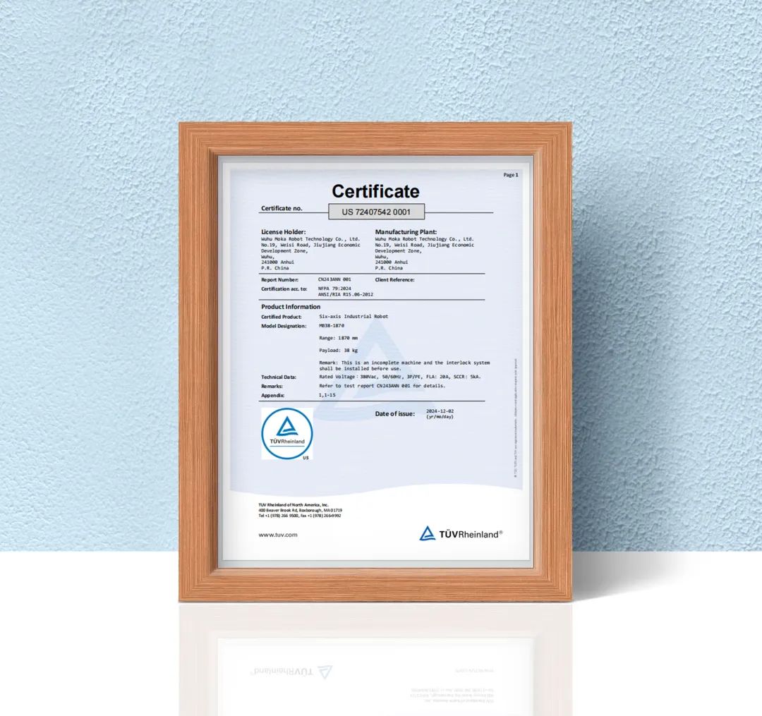 近日,在團(tuán)隊(duì)共同努力下,藦卡機(jī)器人產(chǎn)品經(jīng)過(guò)嚴(yán)格的測(cè)試、檢驗(yàn)、審核,憑借其高質(zhì)量和強(qiáng)有力的國(guó)際市場(chǎng)競(jìng)爭(zhēng)力順利獲得了TüV頒發(fā)的北美認(rèn)證證書(shū)。此項(xiàng)證書(shū)不僅標(biāo)志著藦卡機(jī)器人產(chǎn)品符合國(guó)際相關(guān)嚴(yán)格標(biāo)準(zhǔn)和國(guó)際市場(chǎng)要求,同時(shí)也為藦卡機(jī)器人進(jìn)一步拓展全球市場(chǎng)奠定了良好基礎(chǔ)和強(qiáng)力的支撐。