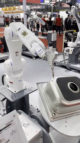 此焊接工作站搭載江龍智能的梟隆焊機(jī),雙電機(jī)同步驅(qū)動(dòng),具有推拉絲、送絲功能,適用于焊接碳鋼、不銹鋼、鋁合金、直流、單脈沖、雙脈沖?,F(xiàn)場(chǎng)為用戶們展示焊接實(shí)操,吸引不少國內(nèi)外客戶駐足觀看。